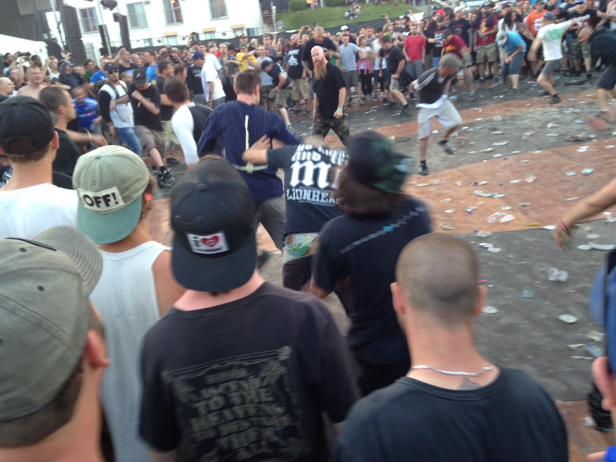 Amnesia Rockfest continues today in Montebello, but here I sit an hour West at an art gallery in Ottawa. I am sad to miss Anti-flag and Ignite, (OK and Motley Crüe), but I have put my body through a little too much this week. The pits during 88FL, H2O, Strife, and Earth Crisis were fun as Hell, but I took a few lumps. The walking and standing all day may have been great for my heart, but my dogs are barking. And my throat and lungs are burning from way too much pot smoke.