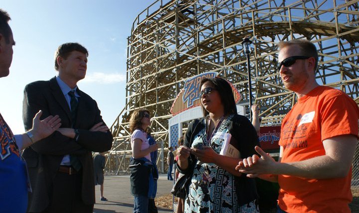 Celestine in the midst of political dialogue and community engagement at Green Bay’s Bay Beach Amusement Park.
